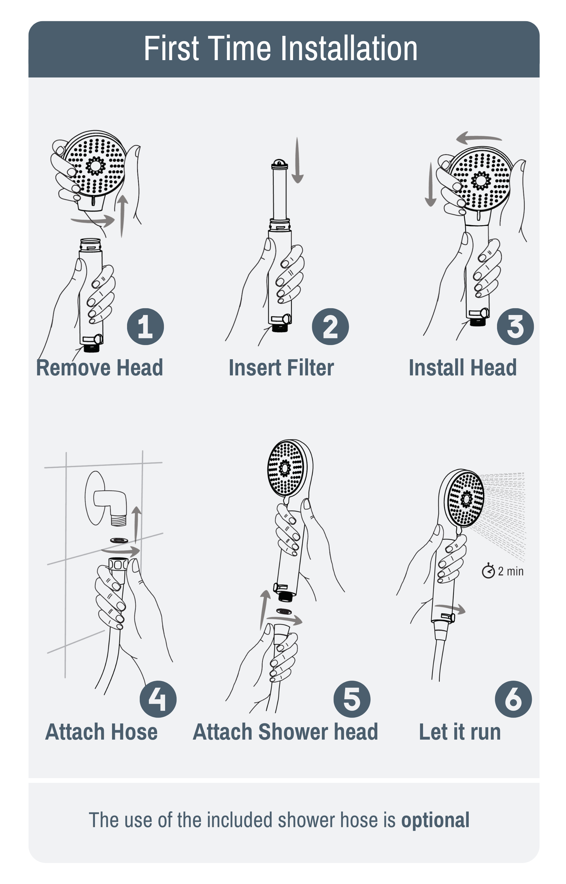 ❓ Q2: Is the nozzle easy to install? ✅ A: Yes! Thanks to the quick-release mechanism, simply rotate the showerhead by 30-40° to remove it and install the nozzle without needing screws or adapters.